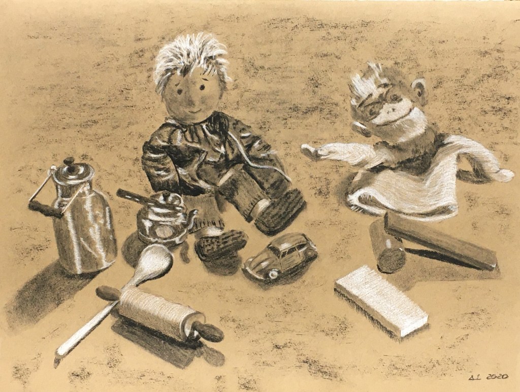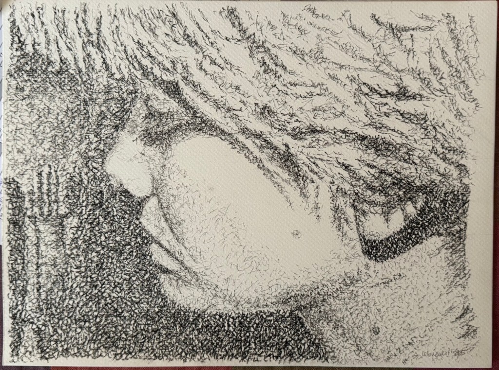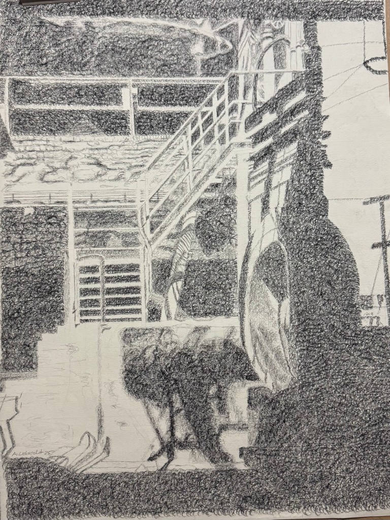 „Maschinen“, 2025, Kreide auf Ingres, 56 x 41 cm,Portrait, Kohle auf , Mi-Teintes, 2025Kohle auf Mi-Teintes, 2025Brokdorf, Troi crayon, 2020, 60 x 80 cmSpielzeug, Kohlezeichnung mit Weißhöhung, 2020, 40 x 70 xm„Bauhaus“, 2019, Fineliner, Kreide, Acryl auf geleimtem Telefonpapier, 48 x 64 cm„Brexit“, 2019, Fineliner, Pastell und Aquarell auf Papier, 50 x 70 cm